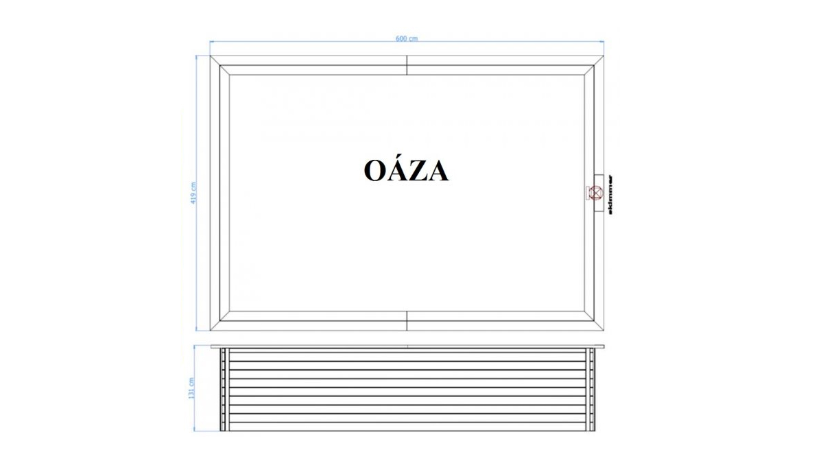 Luxusní dřevěný bazén Oáza je klasický obdélník, nebo chcete-li kvádr. Jednoduchý a vysoce efektní. Také patří do série plnohodnotných bazénů ve tvaru obdélníku, které jsou vhodné pro každodenní sportovní rekreační vyžití. Na své si přijdou a sportovci při rekreačním tréninku a všichni rekreační plavci. Jeho délka rovných 600 cm a šířka 419 cm je vzhledem ke tvaru vhodná pro více plavců najednou. Při celkové výšce 131cm a hloubce cca 120 cm bazén můžete využívat jako plnohodnotný bazén zejména pro každodenní kondiční rekreační plavání. Luxusní dřevěný srubový skelet bazénu je již tradičně zhotoven z výběrového skandinávského dřeva – Borovice. Cena bazénu zůstává velmi vstřícná k zákazníkovi. Stále se jedná o jedno cenově velmi atraktivní řešení domácího plavání a koupání.