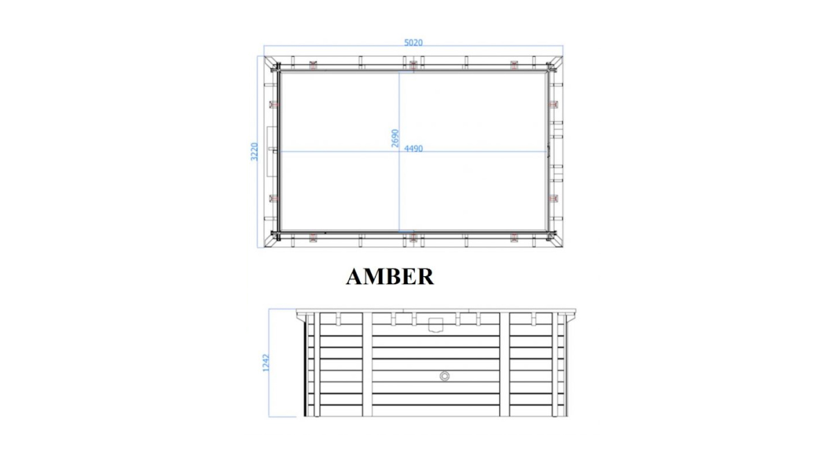 Stylový obdélníkový zahradní bazén Amber je klasický obdélník, nebo chcete-li kvádr. Drží se staré známé pravdy – V jednoduchosti je krása. Série plnohodnotných bazénů ve tvaru obdélníku jsou vhodné pro každodenní sportovní rekreační vyžití, pro relax pro sportovce a také pro trénink pro rekreační plavce. Jeho délka 502 cm a šířka 322 cm je vzhledem ke tvaru vhodná pro více plavců najednou. Při výšce 138cm a hloubce cca 125 cm bazén můžete využívat jako plnohodnotný bazén zejména pro každodenní kondiční rekreační plavání. Stylový dřevěný srubový skelet bazénu je již tradičně zhotoven z výběrového skandinávského dřeva – Borovice. Cena bazénu zůstává velmi příznivá. Stále se jedná o jedno z cenově velmi atraktivních řešení domácího plavání a koupání.
