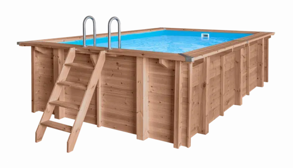 Standardní obsah: dřevěná konstrukce, lepená bazénová vana, upevňovací prvky, skimmer, vstupní šachta, výstupní tryska, geotextilní podklady pro stěny, upevňovací šrouby, vnější dřevěné schody, pochromované vnitřní schůdky