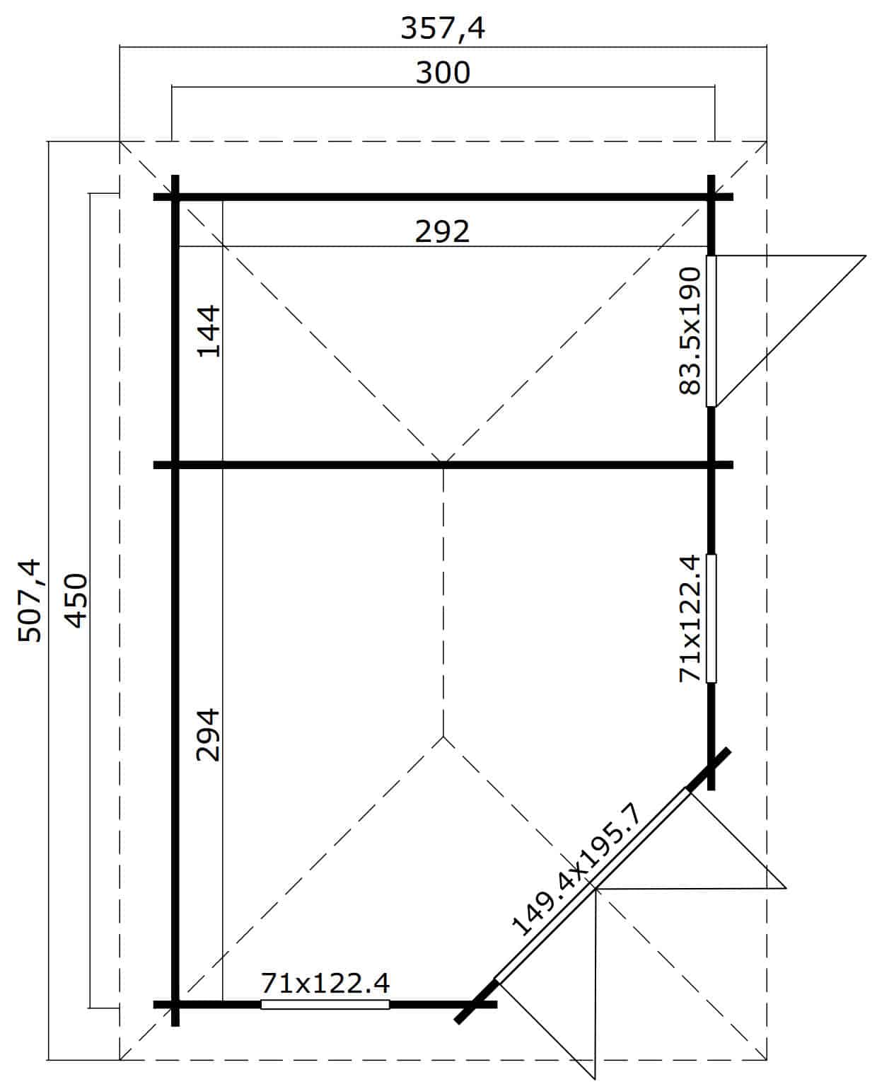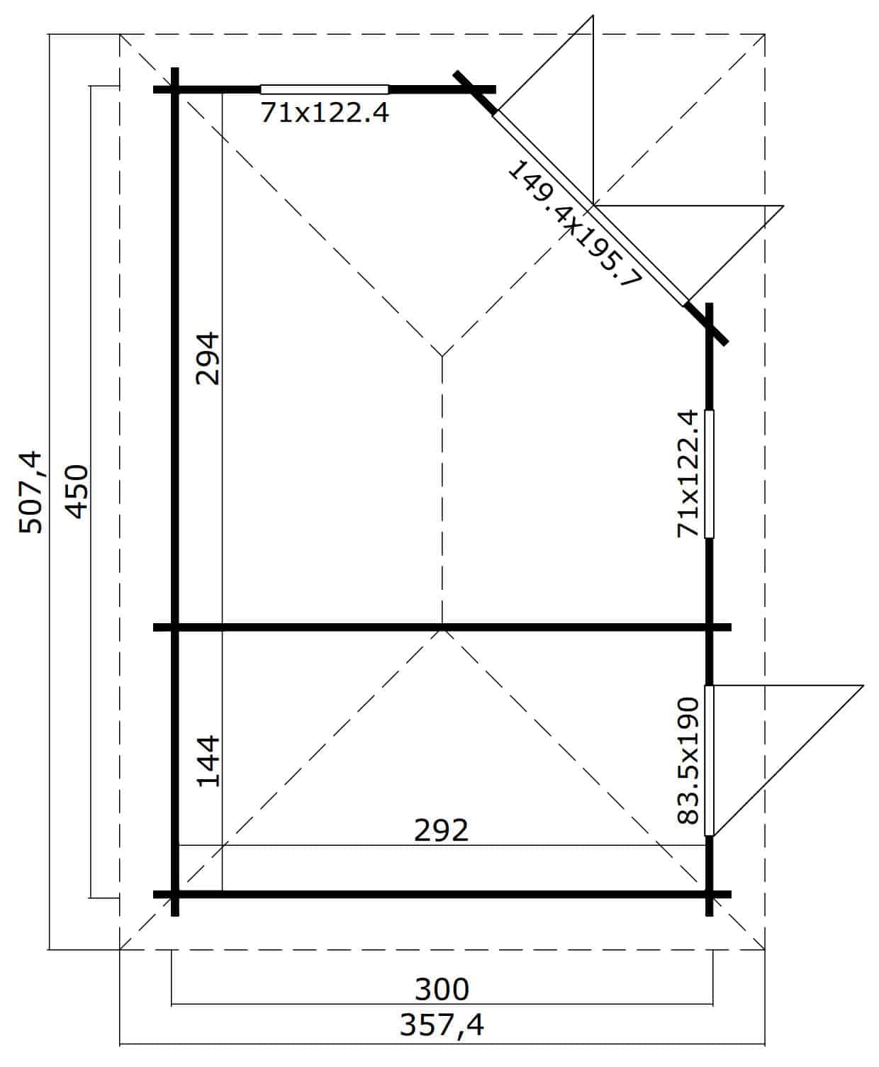 ● Celková plocha střechy 18,96 m² je připravena k pokrytí (střešní krytina není součástí balení)