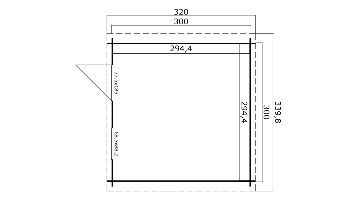 ● Boční stěna: 300 cm