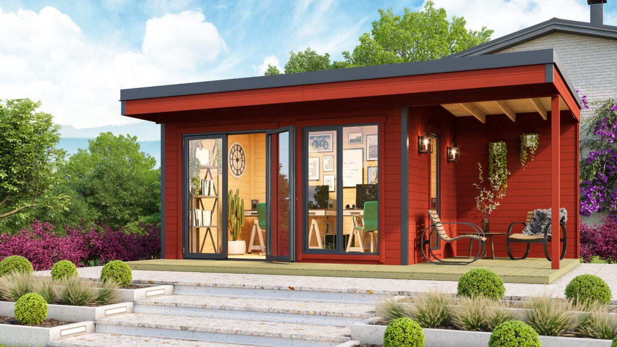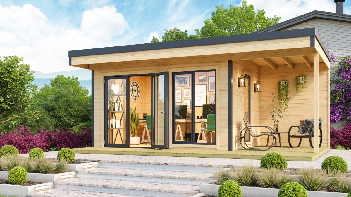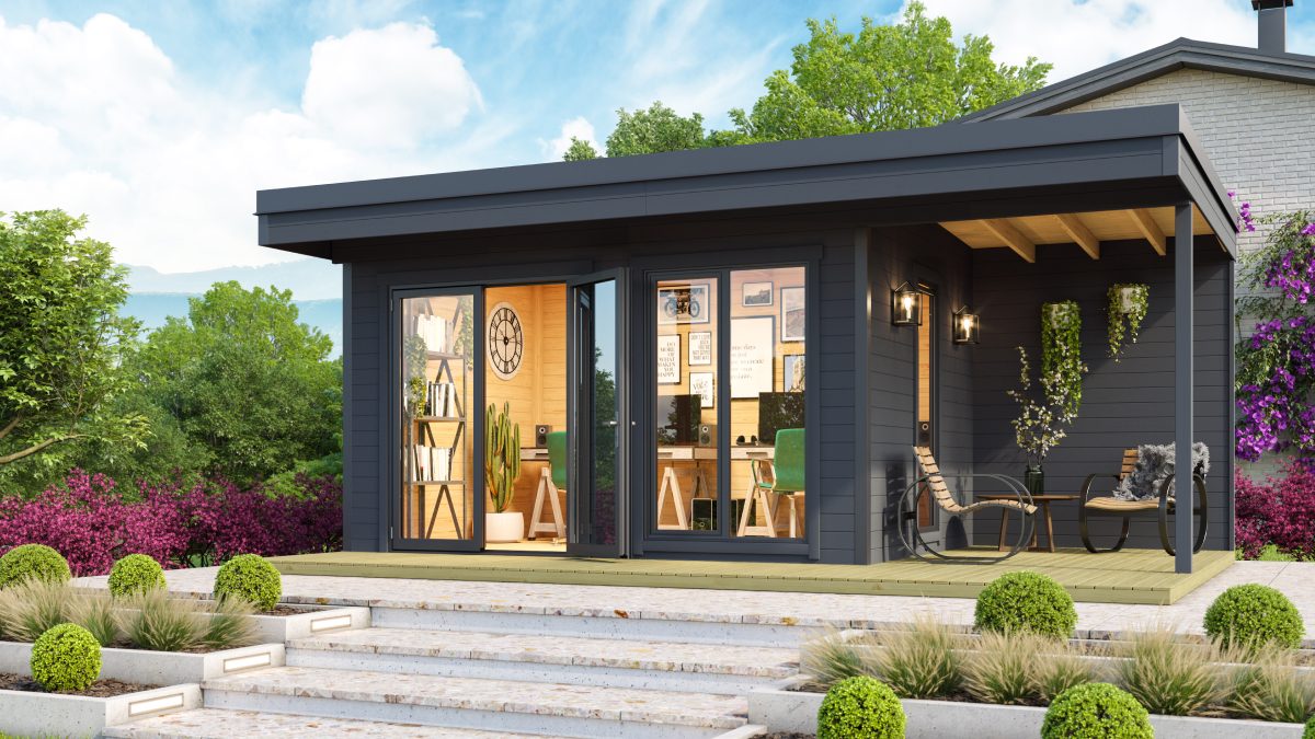 Moderní chatka CUBE DOMEO 7 s přístřeškem – varianty: Dormeo 3Dormeo 4