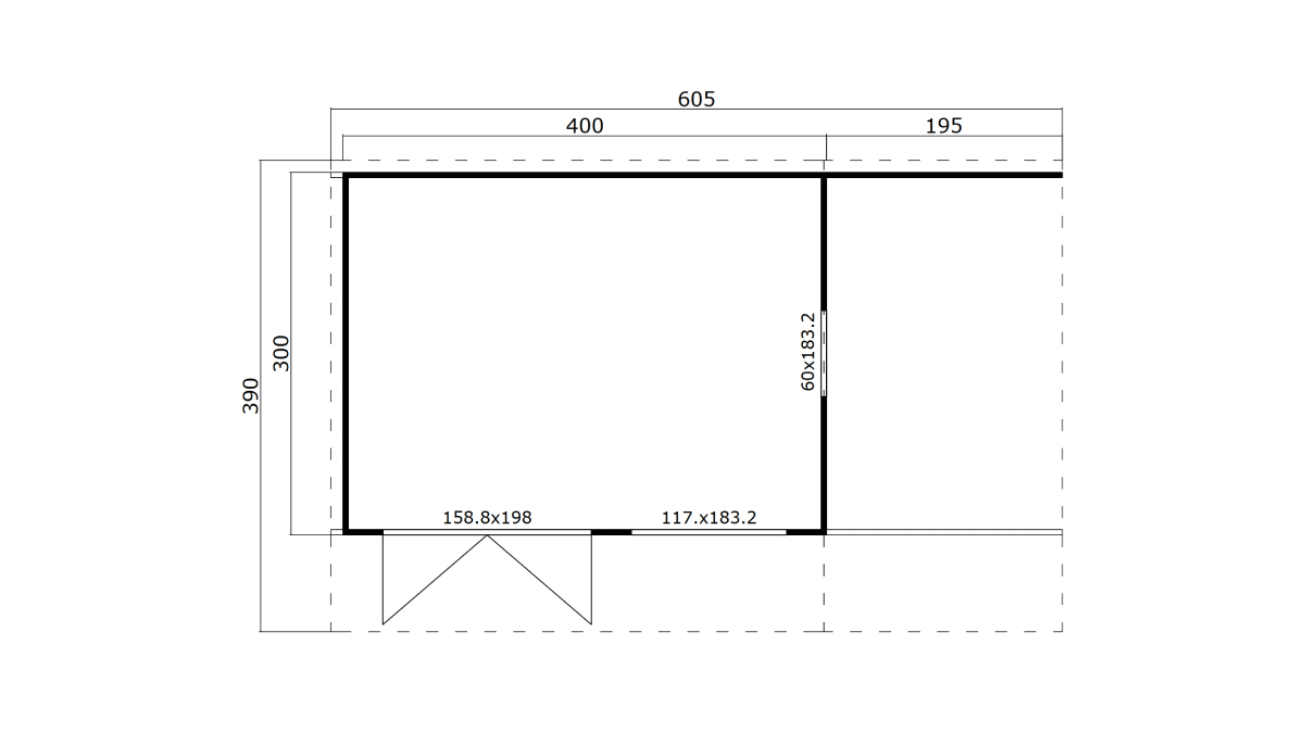 • Rozměry: 300 cm x 400 cm + terasa 195 cm