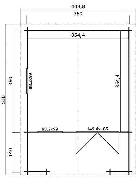 ● Celková plocha střechy 22,26 m² s možností pokrytí střešní krytinou (střešní lepenka je součástí balení, šindele nejsou zahrnuty)