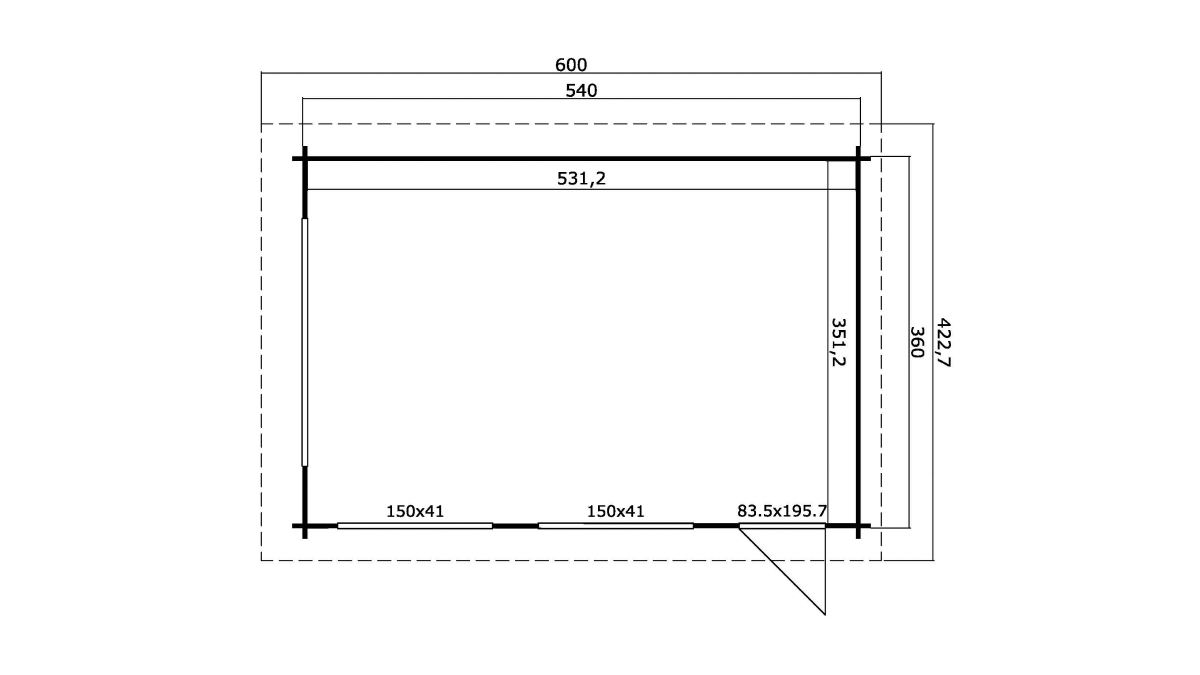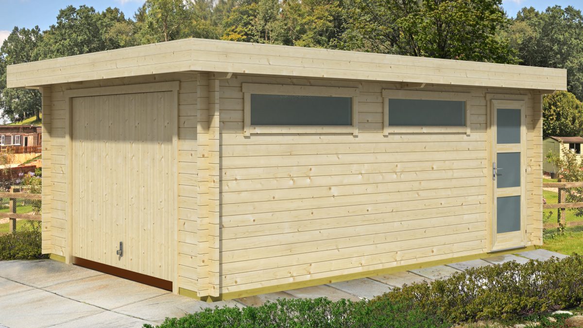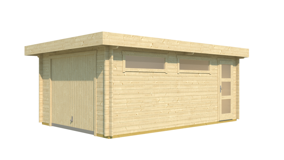 Garáž je vyráběna zpředsušeného smrkového dřeva. Součástí jsou okna, dveře, kování, dvojkřídlové garážové dveře, zámek s klíčem. Výklopná brána je za příplatek. Camberra je jediná garáž s rovnou střechou v naší nabídce.