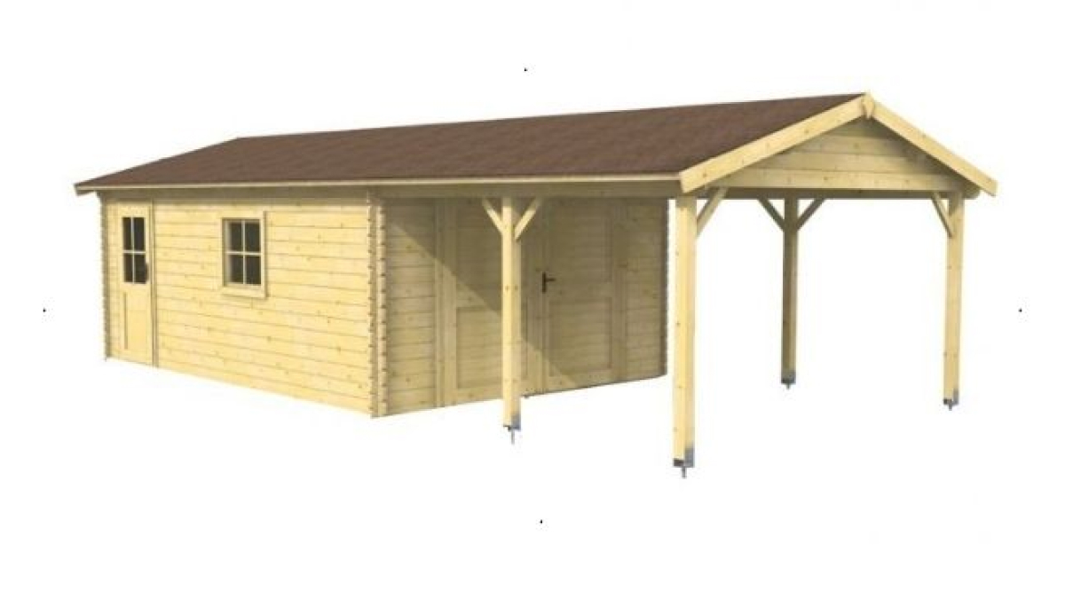 Dřevěná garáž je vyráběna zpředsušeného smrkového dřeva. Součástí jsou garážové křídlové dveře, zámek s klíčem.