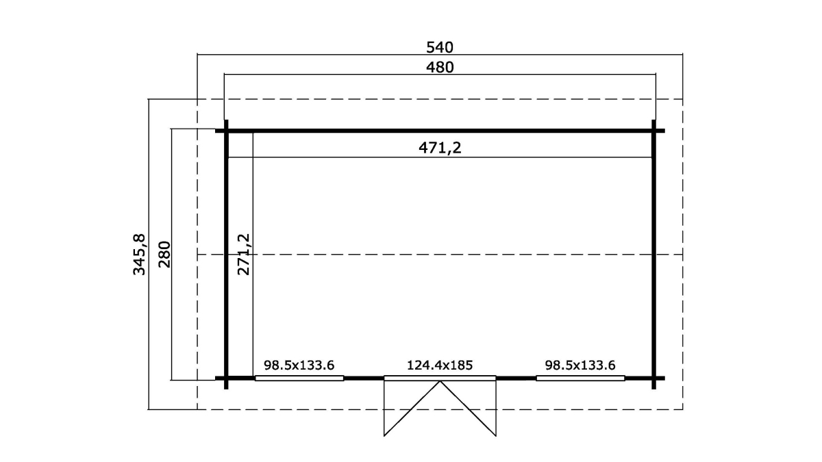 ● Celková plocha střechy 19,44 m², připravená k pokrytí (střešní krytina není součástí balení)