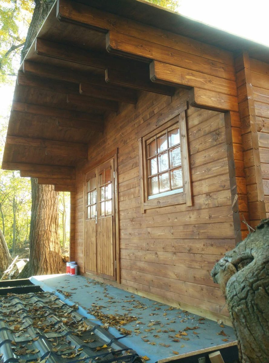 K domu lze doobjednat přístřešek, který zboku prodlužuje střechu o 120cm (případně dle Vašeho přání na míru. Také je možné k domku dokoupit efektní terasu se zábradlím. Přístřešek a terasu je možné vidět v našich realizacích.