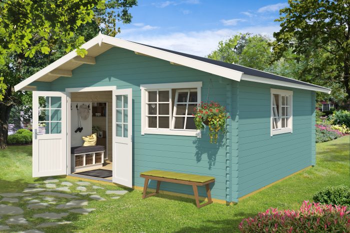 Její využití je opravdu všestranné. Můžete v ní skladovat materiál, nářadí, kola, případně umístit příslušenství k bazénu. Oceníte praktické dvojdveře, které usnadňují manipulaci při používání domku. Zahradní chatky Gotland jsou mimořádně vhodné pro vytvoření oddechové zóny pro Vás a Vaše blízké ať už jako letní kuchyně, nebo místo pro příležitostné přespání zejména v letních měsících. Chatku lze poskládat i zrcadlově. Domek je vyráběn je z předsušení severského smrkového dřeva. Součástí domu jsou okna, dvojdveře, kování, podlaha, zámek s klíčem.