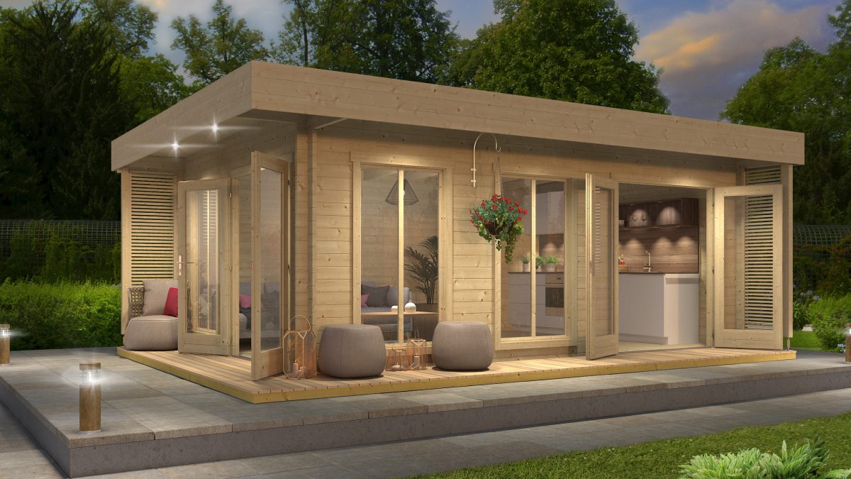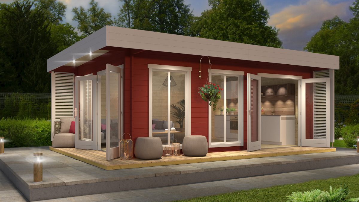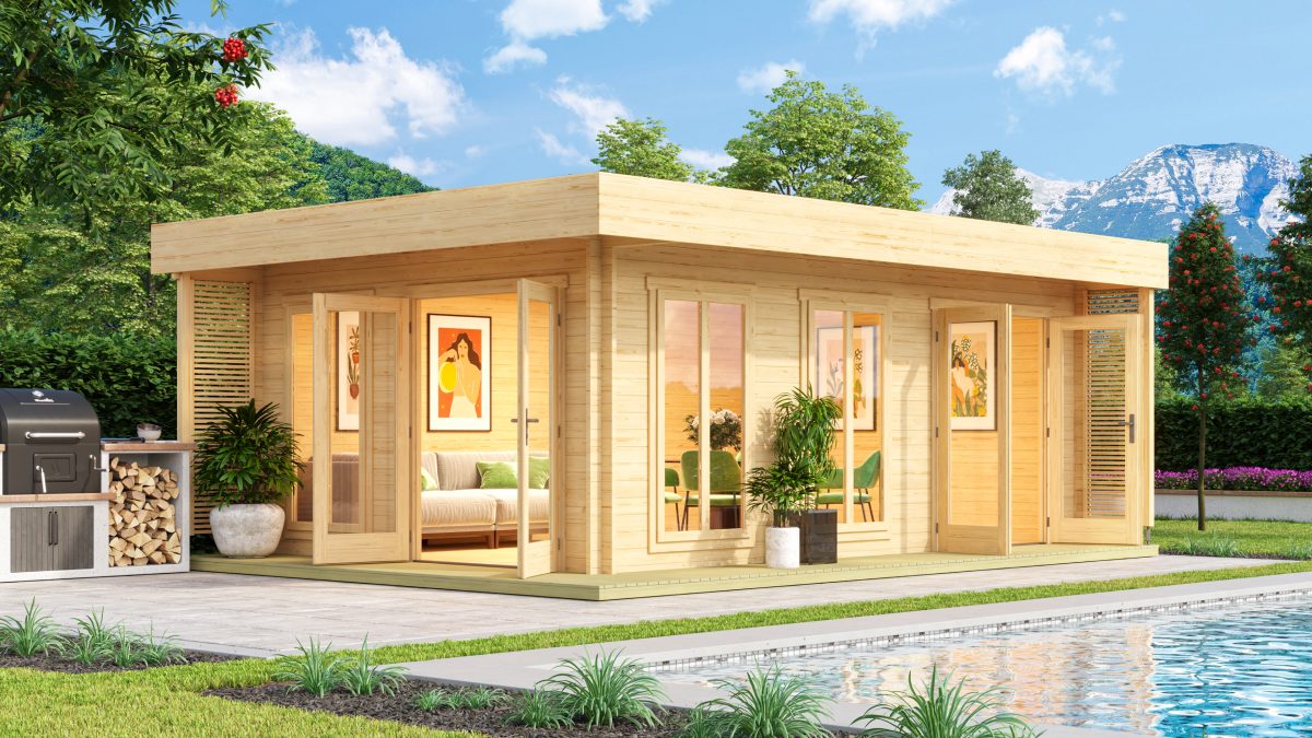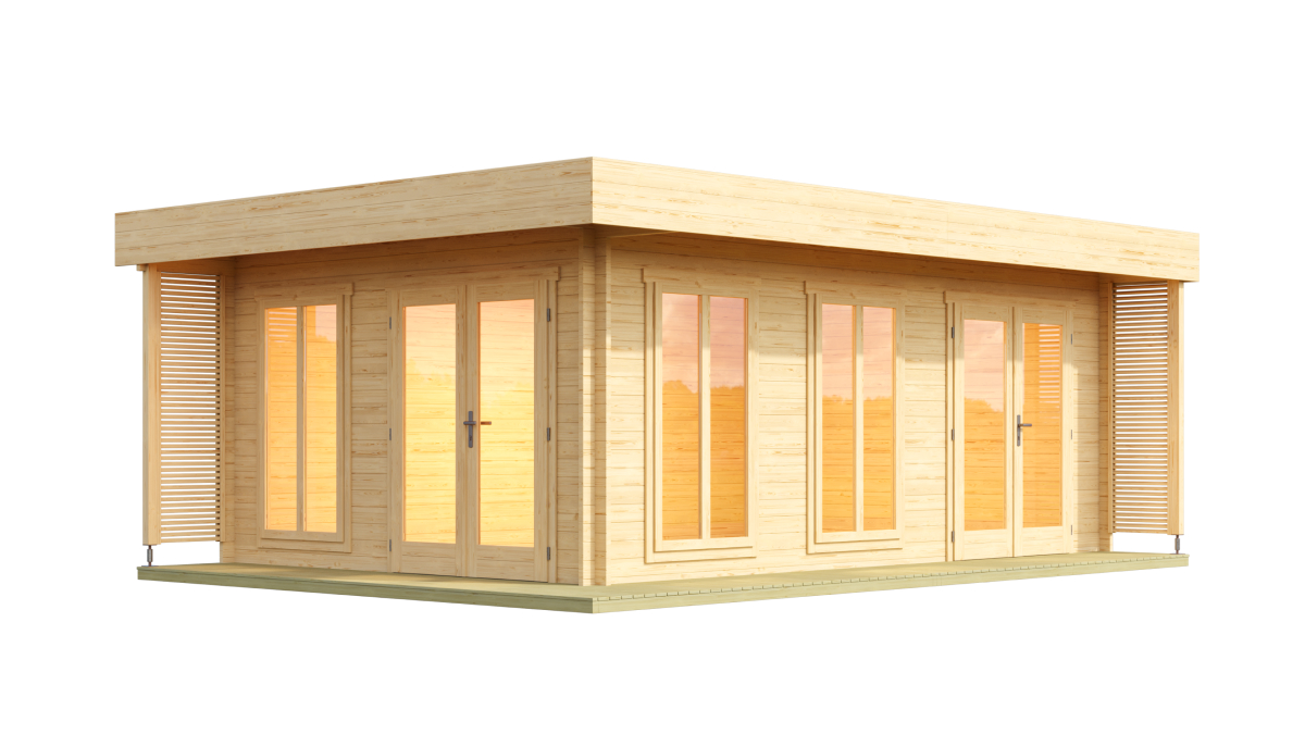 Zahradní ateliér Dominica lze sestavit v zrcadlové variantě, což umožňuje flexibilitu při umístění dveří a oken dle vašich potřeb.