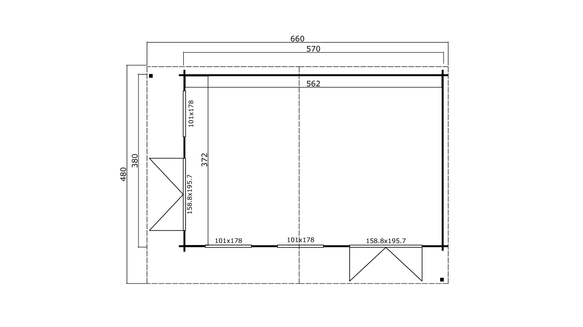 1 – Rozměr základního domku a zahradní chatky.