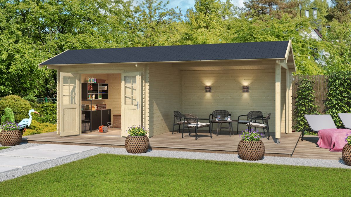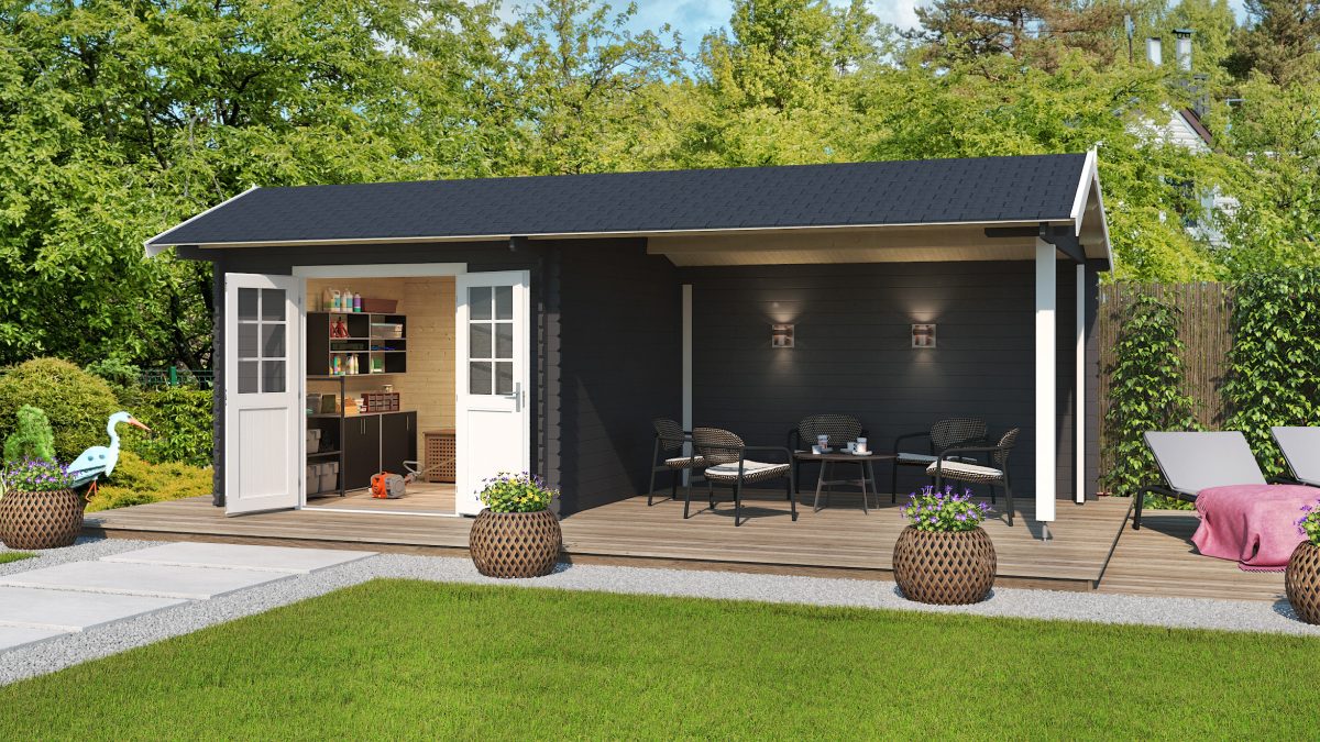 Zahradní domek s přístřeškem Ivana 275 je perfektní volbou pro každého, kdo hledá multifunkční zahradní domek s přístřeškem. Skvěle poslouží jako sklad, venkovní kuchyně nebo relaxační zóna.