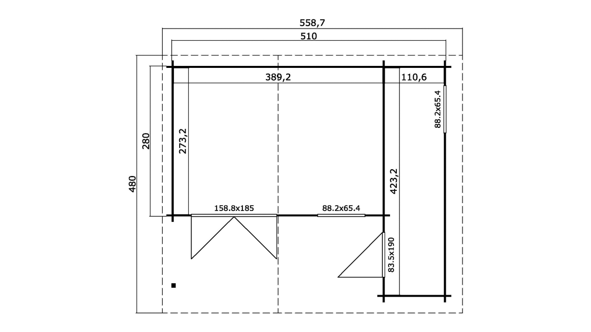 • Rozměr: 510 cm x 430 cm (21,3 m²)