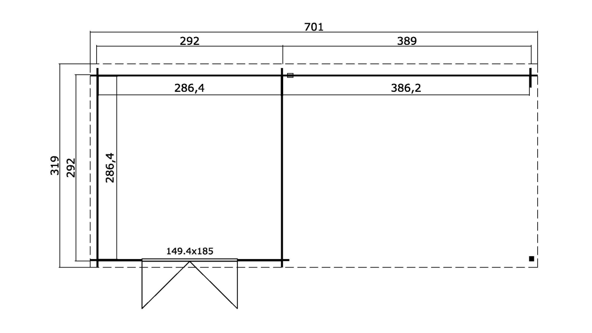 Zahradní domek lze také smontovat v zrcadlovém provedení.
