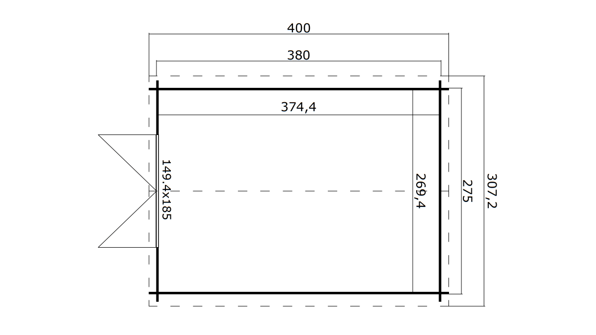 1 – Rozměry základního domku a zahradní chatky.